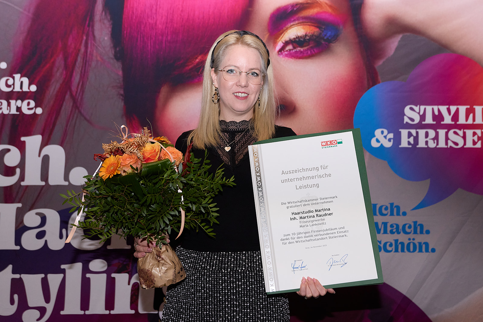 Im festlichen Ambiente des Aiola im Schloss St. Veit versammelte die Friseurinnung der Steiermark am 17. November zahlreiche Unternehmer:innen, um ihre langjährige Tätigkeit feierlich zu würdigen.