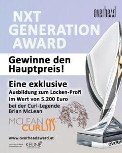 Wir lüften das Geheimnis zu den Hauptpreisen! Durch die starke Kooperation von OVERHEAD mit Brian McLean können die Teilnehmer:innen beim NXT Generation Award 3 x eine exklusive Ausbildung zum Lockenprofi nach der bekannten MCLEAN CURLSYS ® Technologie gewinnen. ![]()