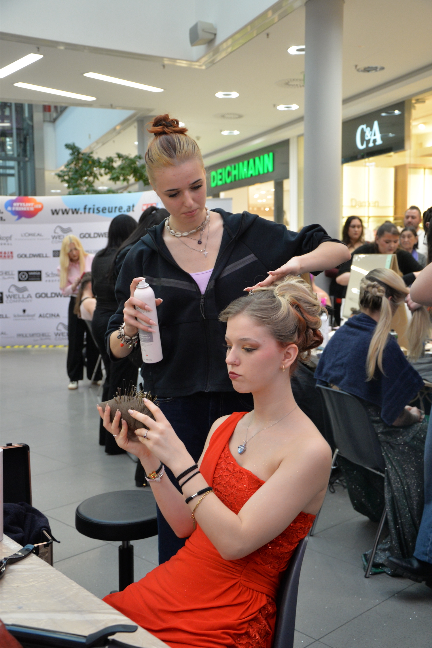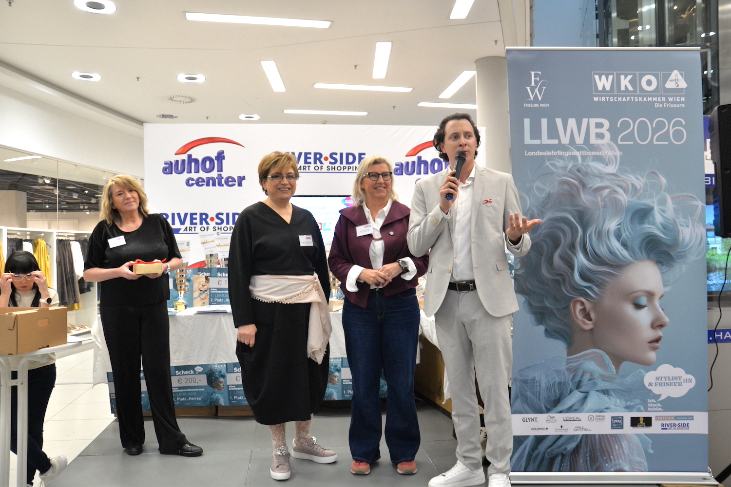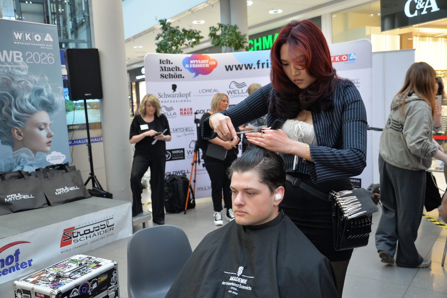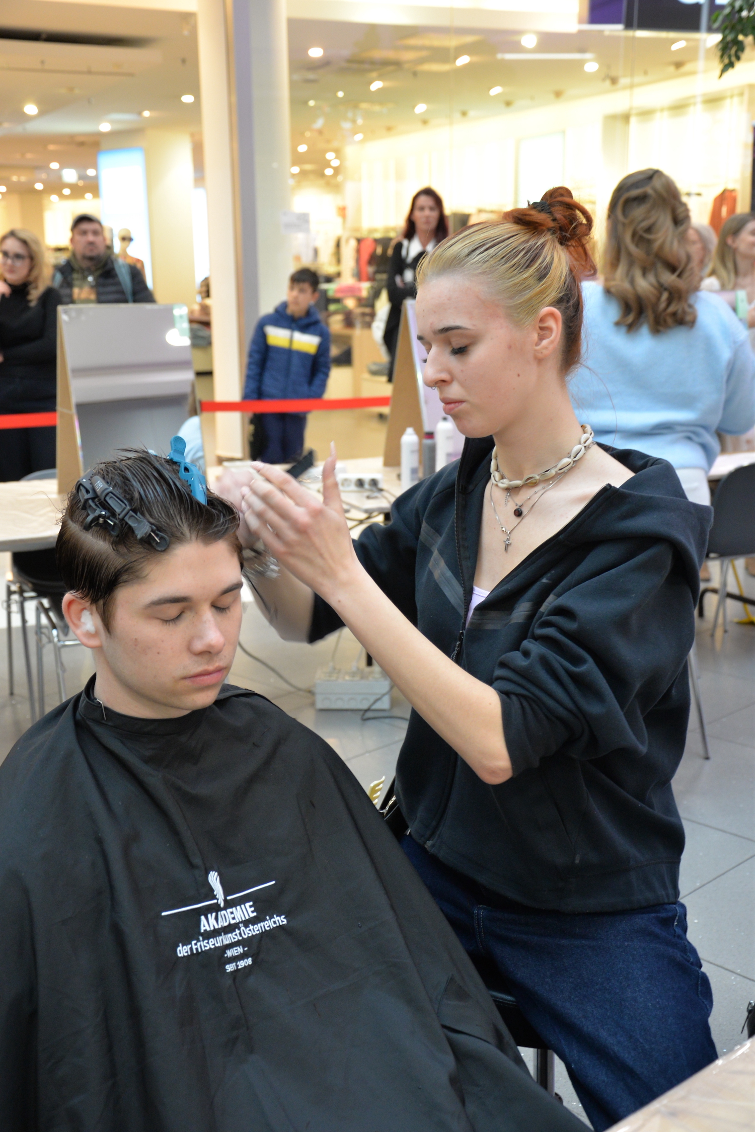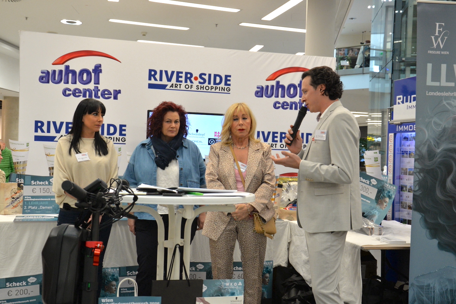 Wie bereits in den vergangenen Jahren fand die Veranstaltung im Einkaufszentrum Riverside statt. Möglich gemacht wurde dies durch Mst. KommR. Peter Schaider, stellvertretender Landesinnungsmeister in Wien und selbst erfahrener Preisfriseur. Besucher:innen konnten live miterleben, wie die Lehrlinge unter höchster Konzentration beeindruckende Frisuren kreierten.