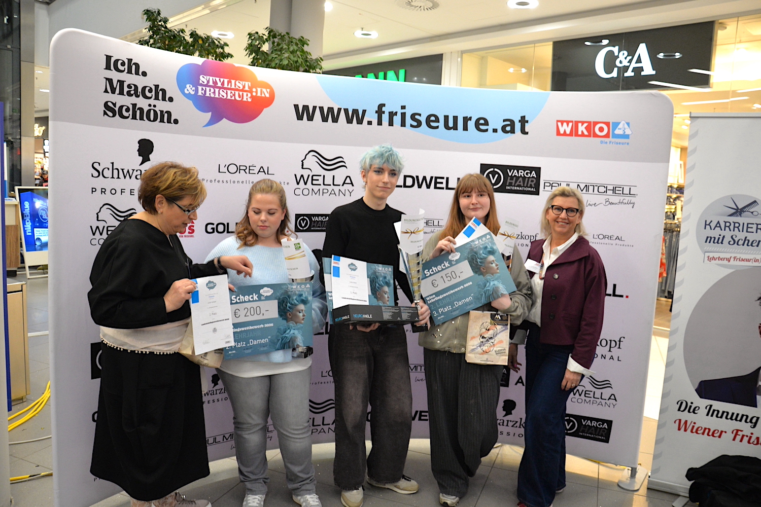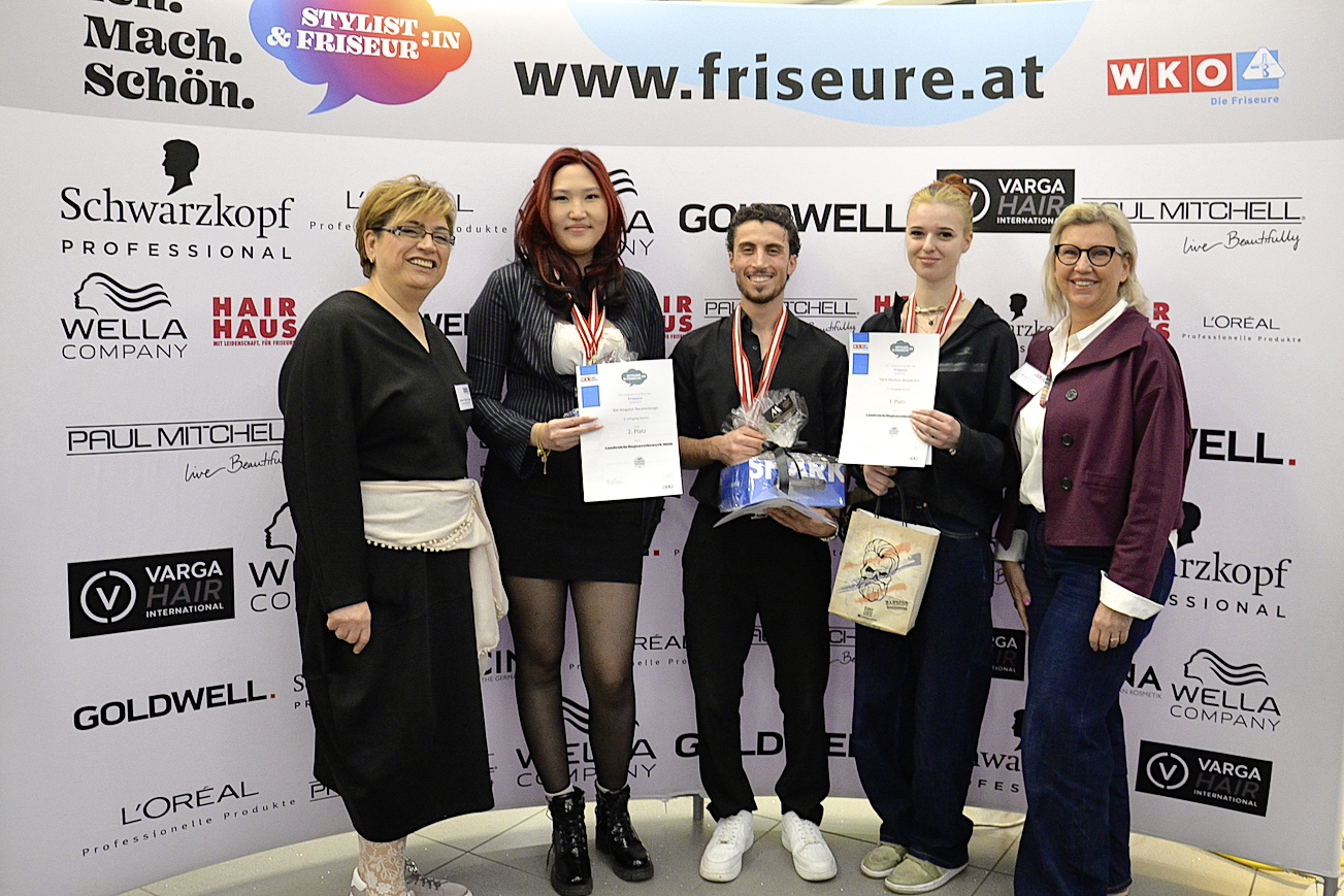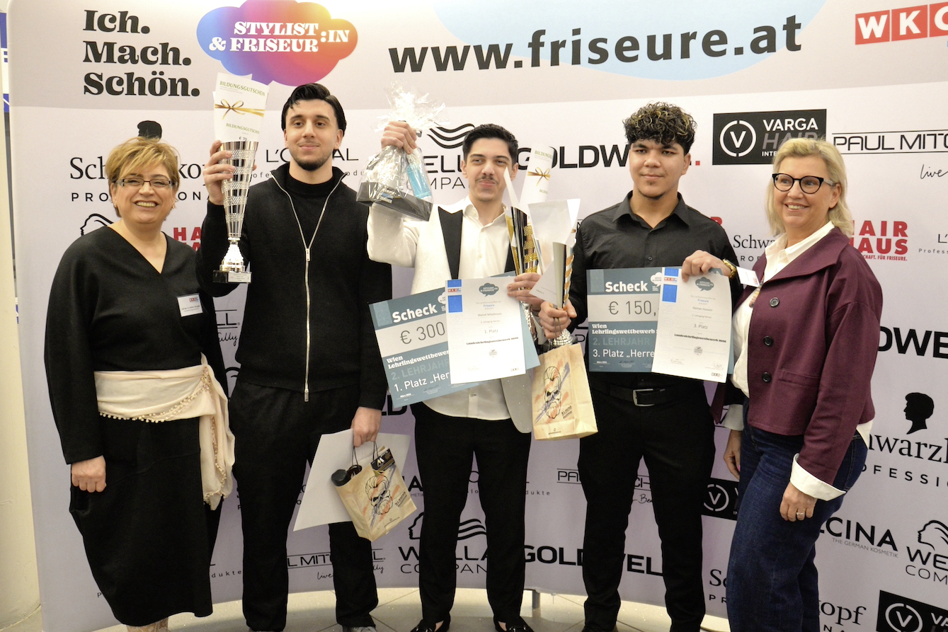 Neben Anerkennung und Sichtbarkeit durften sich die drei Erstplatzierten über Geldpreise in Höhe von 300, 400 und 600 Euro freuen. Zusätzlich erhielten sie Ausbildungsgutscheine vom WIFI Wien sowie hochwertige Produktpakete von Paul Mitchell (Brendel & Söhne) und Banditos.