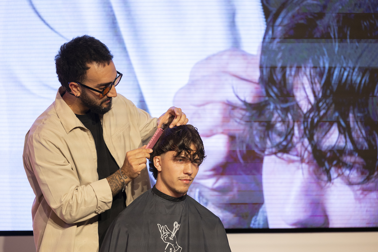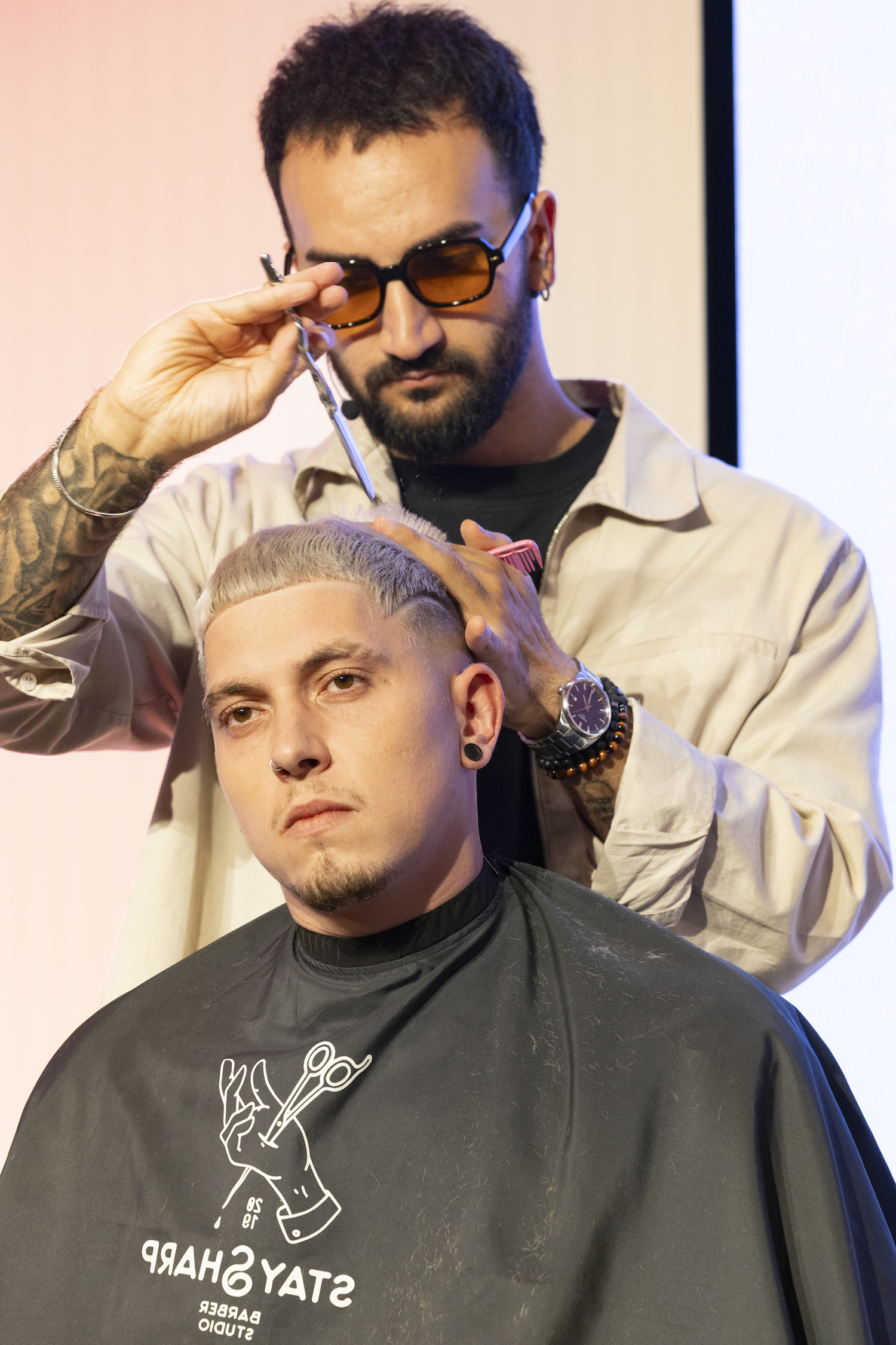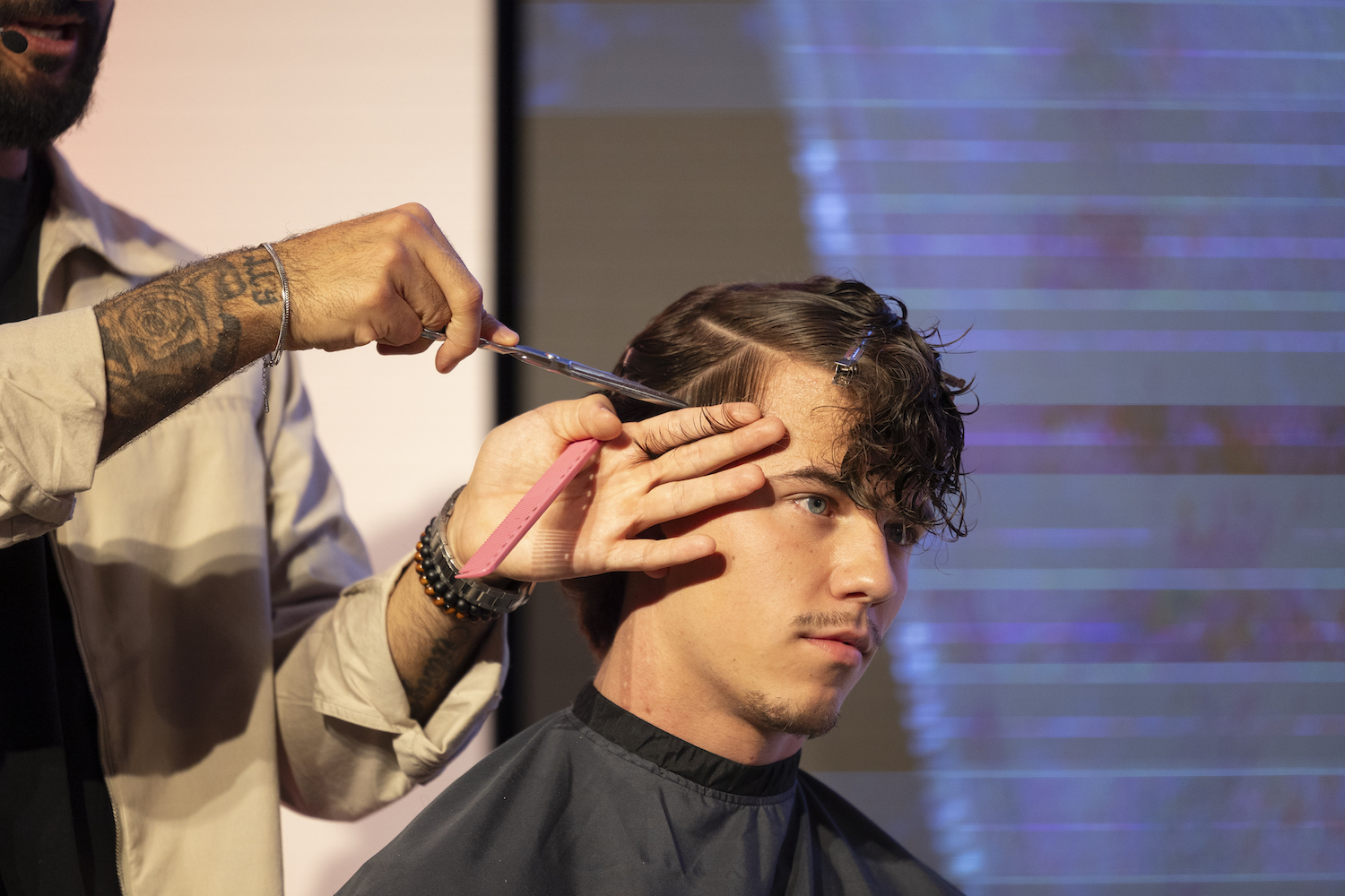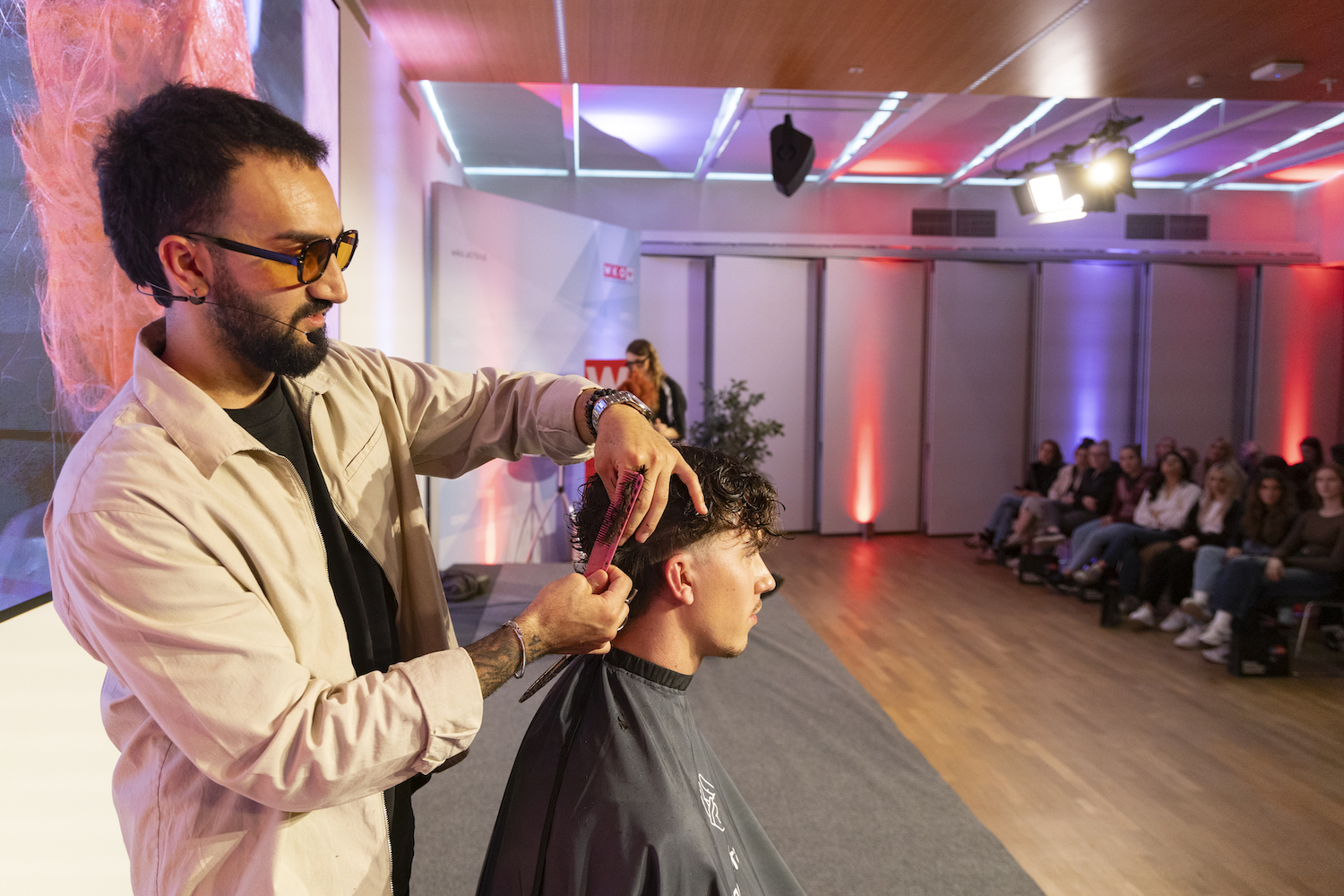 Die Top-Stylisten Christina Hofer, Salon Looksus Innsbruck, und Ibo Bozkurt, Staysharp Barberstudio Innsbruck, brachten je zwei Modelle mit. Ibo zeigte moderne Herrenhaarschnitte mit besonderem Fokus auf Fades, während Christina eine innovative Schneidetechnik sowie ein Styling präsentierte, das von der Berliner Fashionweek inspiriert ist. Die Teilnehmer hatten Gelegenheit, Fragen zu stellen und mehr über die Techniken und Arbeitsweisen der Profis zu erfahren.
