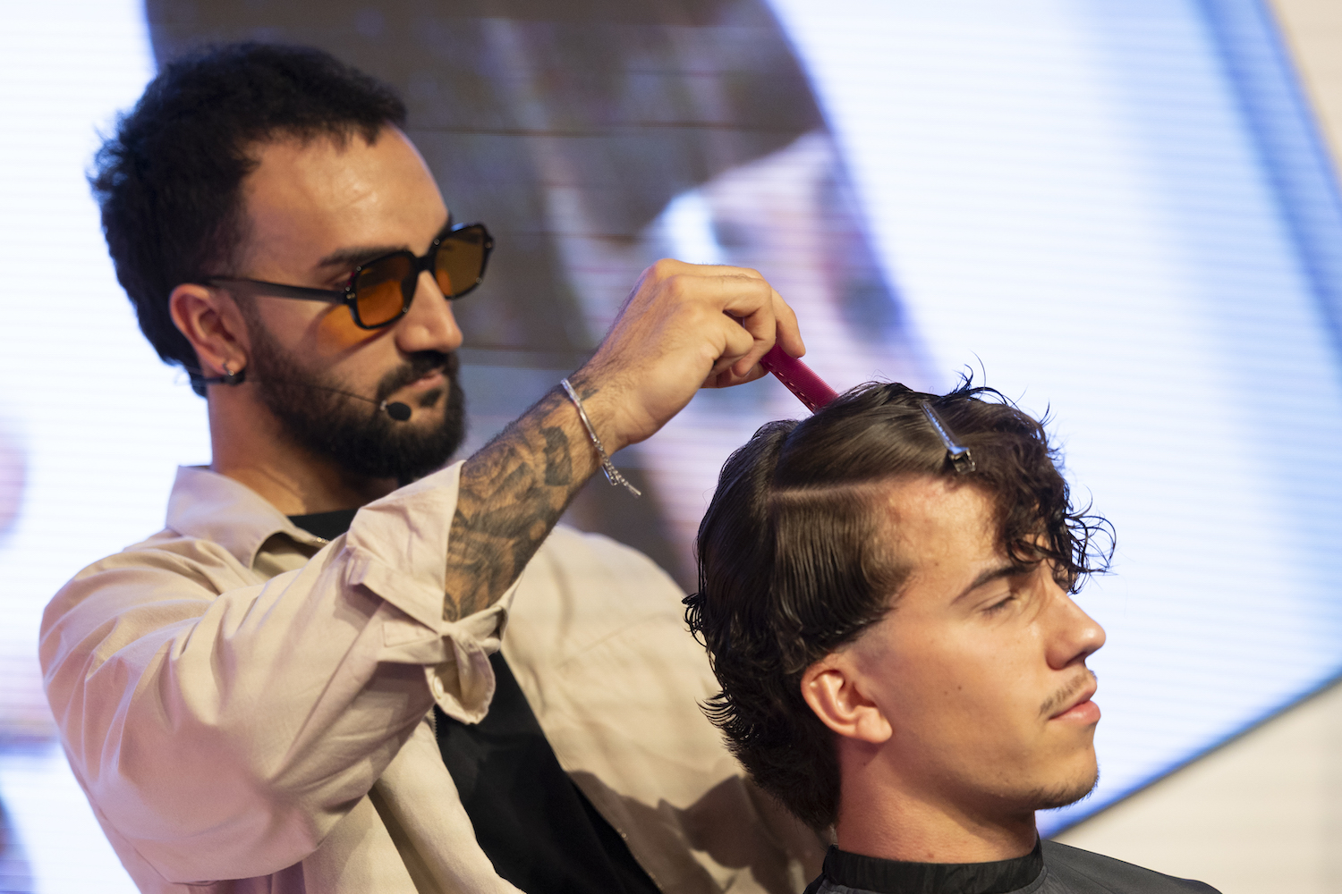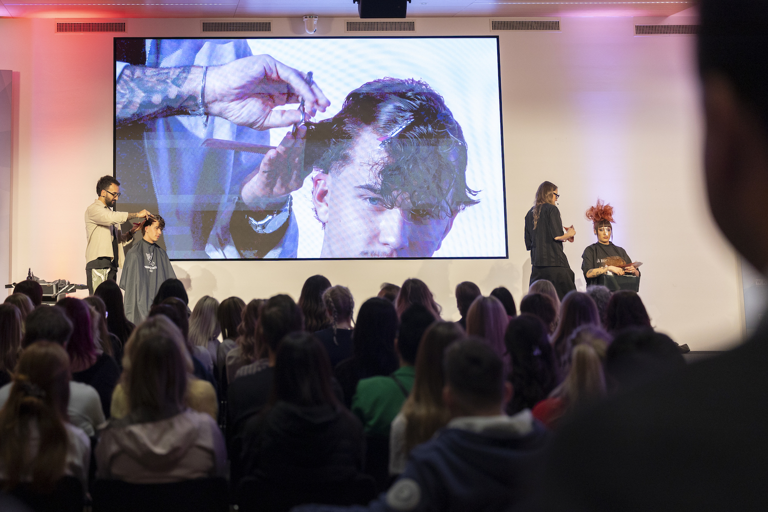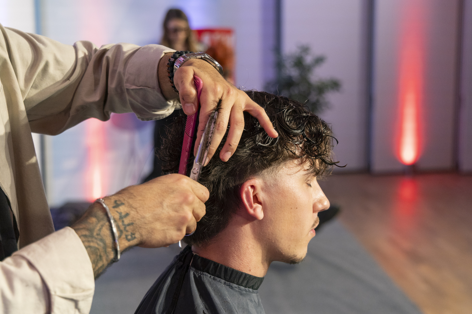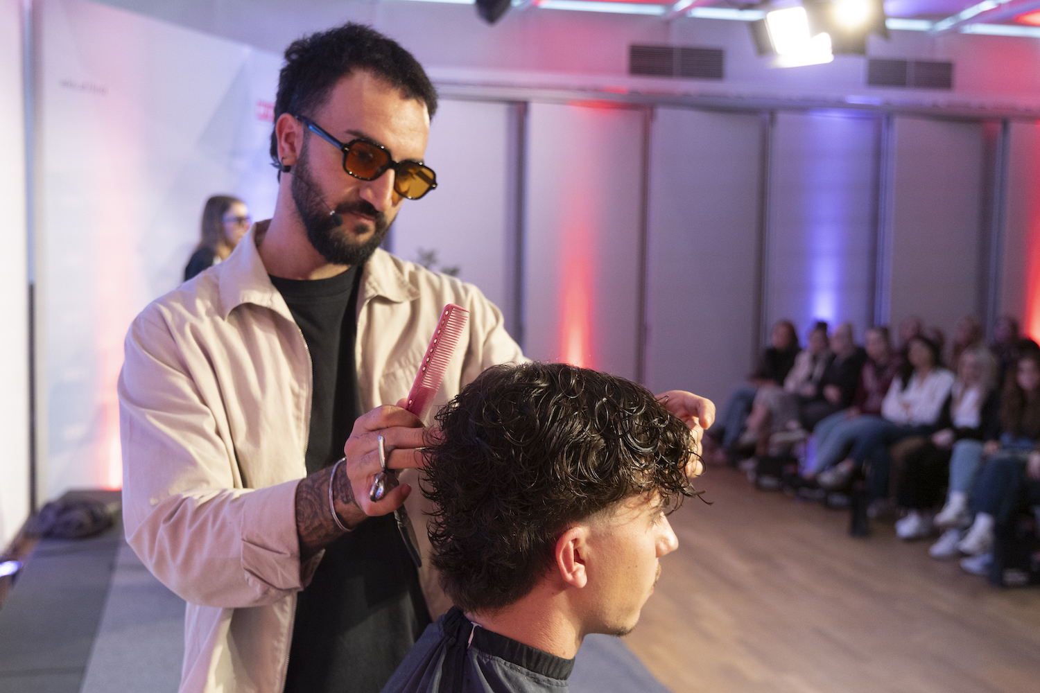 Die Top-Stylisten Christina Hofer, Salon Looksus Innsbruck, und Ibo Bozkurt, Staysharp Barberstudio Innsbruck, brachten je zwei Modelle mit. Ibo zeigte moderne Herrenhaarschnitte mit besonderem Fokus auf Fades, während Christina eine innovative Schneidetechnik sowie ein Styling präsentierte, das von der Berliner Fashionweek inspiriert ist. Die Teilnehmer hatten Gelegenheit, Fragen zu stellen und mehr über die Techniken und Arbeitsweisen der Profis zu erfahren.