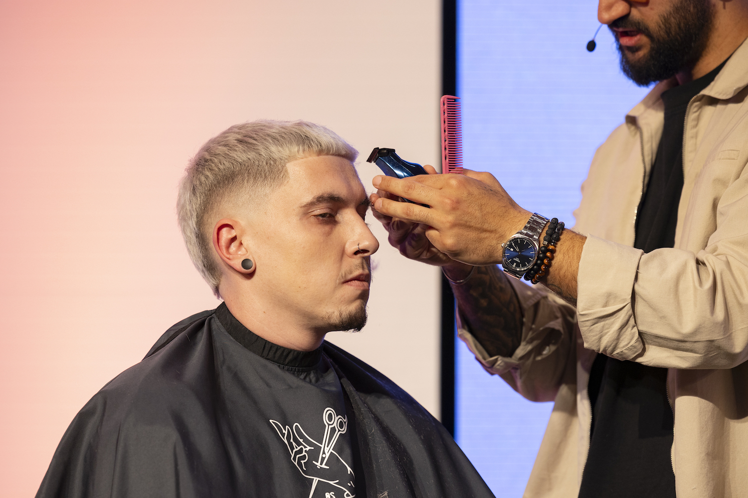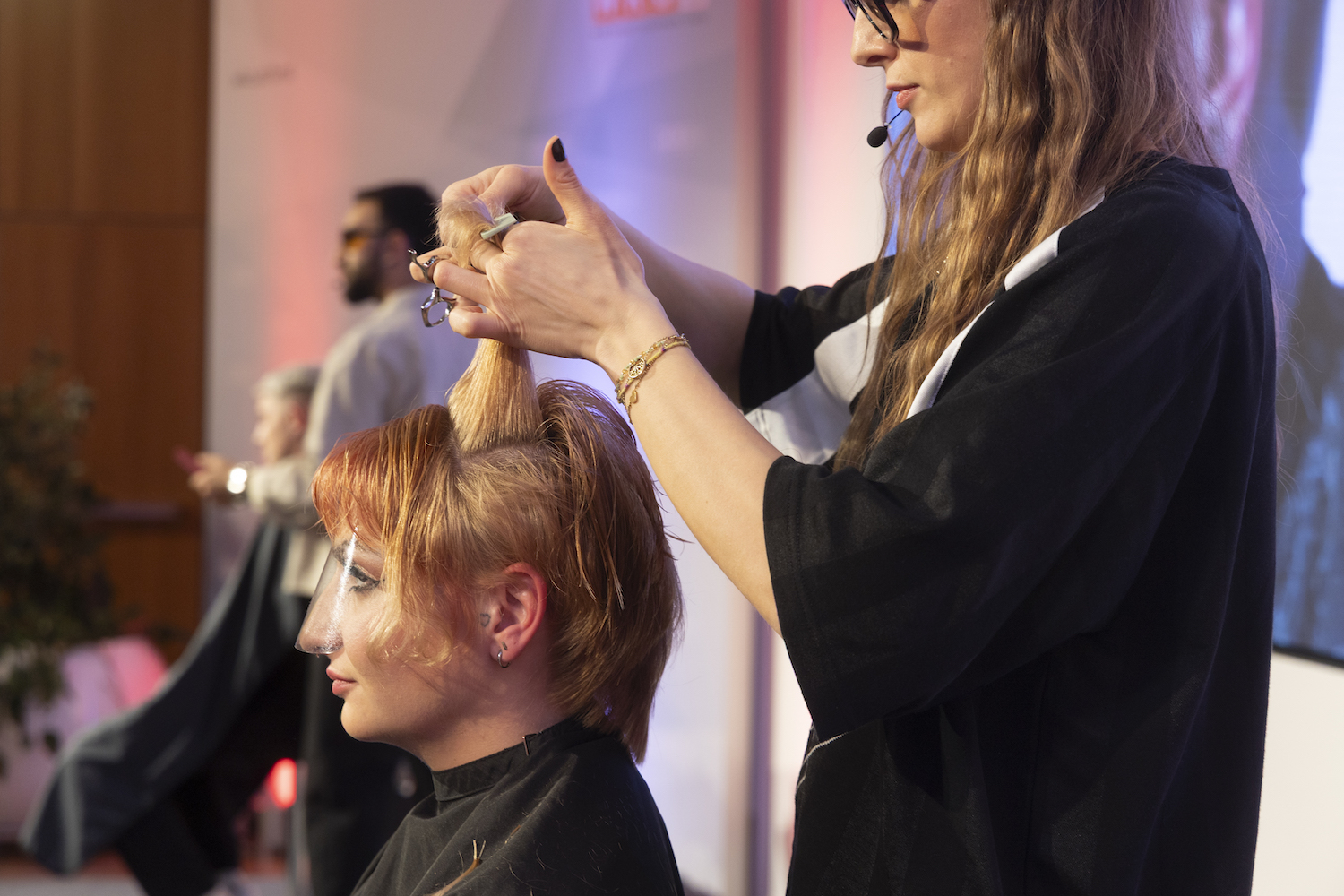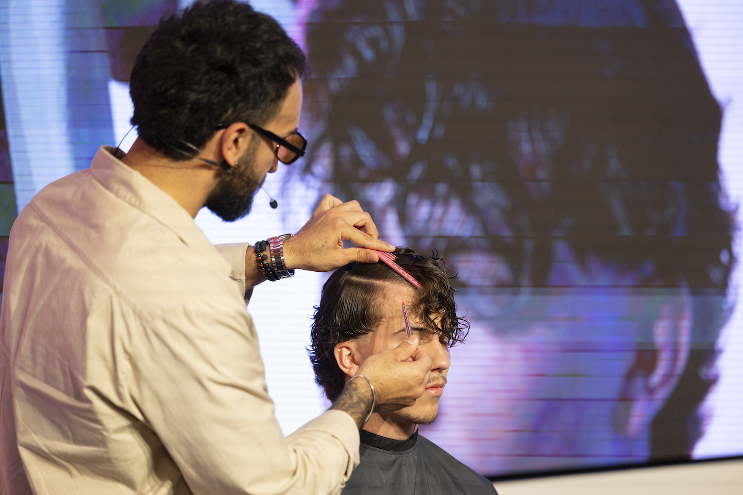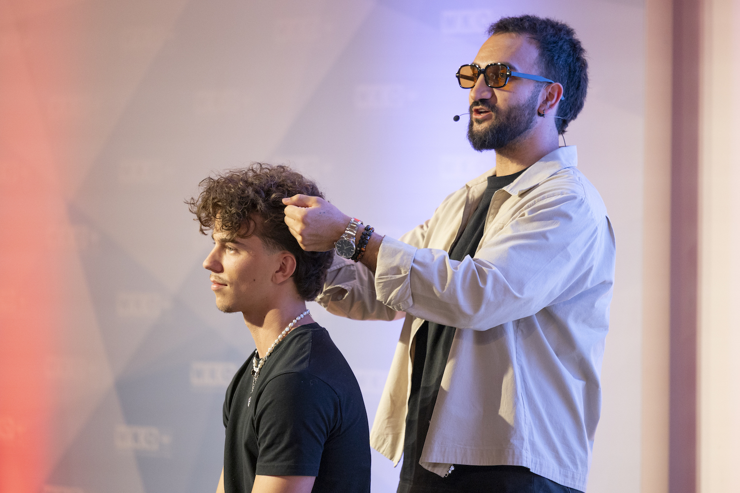 Die Top-Stylisten Christina Hofer, Salon Looksus Innsbruck, und Ibo Bozkurt, Staysharp Barberstudio Innsbruck, brachten je zwei Modelle mit. Ibo zeigte moderne Herrenhaarschnitte mit besonderem Fokus auf Fades, während Christina eine innovative Schneidetechnik sowie ein Styling präsentierte, das von der Berliner Fashionweek inspiriert ist. Die Teilnehmer hatten Gelegenheit, Fragen zu stellen und mehr über die Techniken und Arbeitsweisen der Profis zu erfahren.