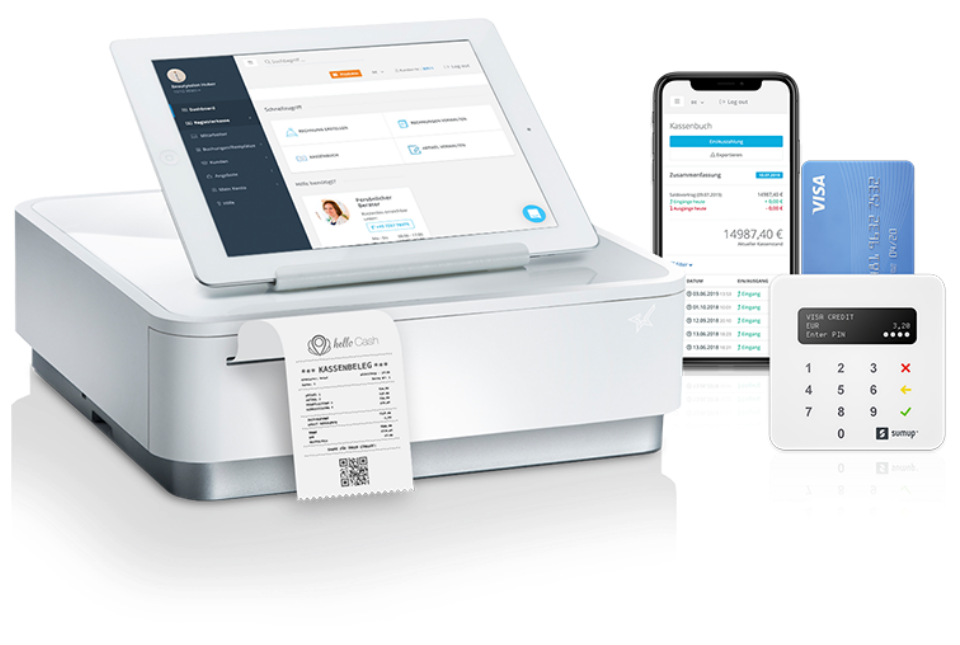 Mit dem mobilen helloSmart-Terminal können Belege auch unterwegs erstellt werden und Kartenzahlungen empfangen werden – ideal für mobile Friseure oder Events.