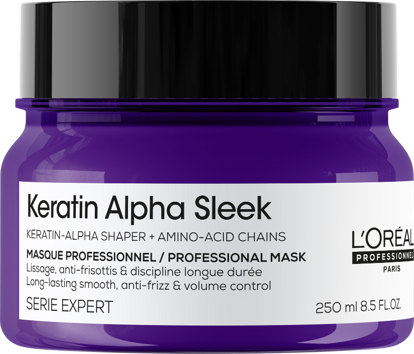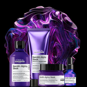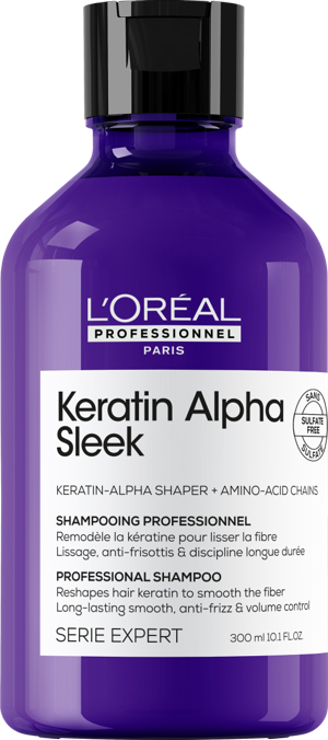 Keratin Alpha Sleek ist die neue professionelle Haarpflegeserie von L’Oréal Professionnel, die mit Keratin-Alpha Shapern und Aminosäureketten angereichert ist. So gelingt es der patentierten Technologie, im Inneren der Haarfaser zu wirken.
