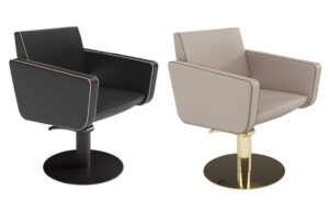 Friseurstuhl mit hydraulischer Pumpe mit Blockierung Tellerfuß Supergold oder Superblack.