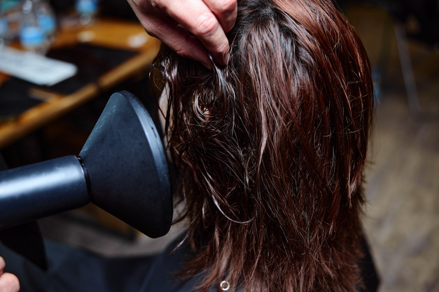 2) Mit grobzinkigem Kamm das Haar sorgfältig kämmen, um eine gleichmäßige Saturation des Haares zu erreichen.