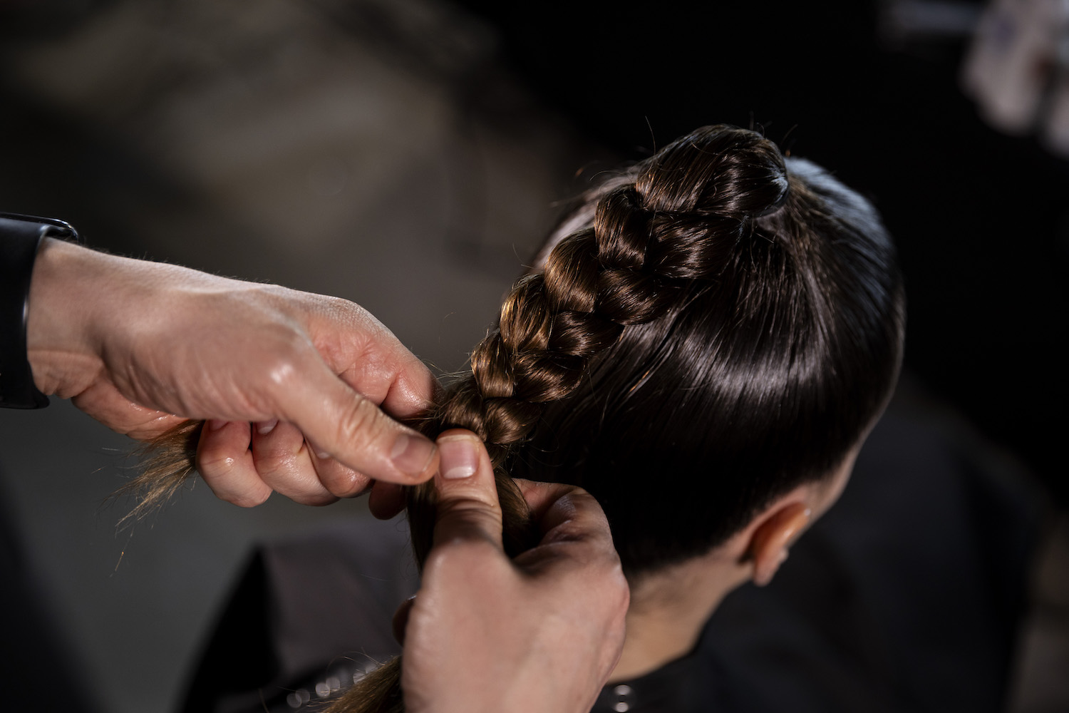 7) Zum Schluss wird der Zopf mit dem Light Weightless Shine-Oil in einem Dreierzopf geflochten. Für maximalen Glanz und Frizz Kontrolle.